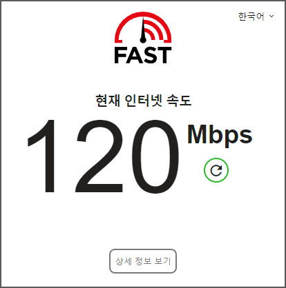 인터넷 속도는 다운로드 받는 속도를 의미하는데요, 하단에 있는 상세 정보 보기 메뉴를 누르면 좀 더 상세하게 정보를 표기해줍니다.