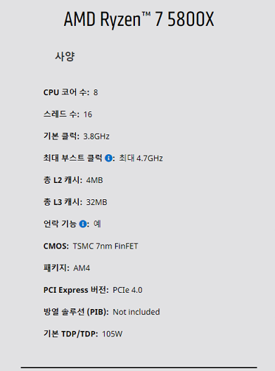 3.7GHz 기본클럭 / 4.8GHz 부스트 클럭