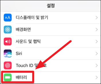 아이폰 설정으로 들어가서 스크롤하다보면 [배터리]라는 항목이 있습니다. 그것을 선택하세요.